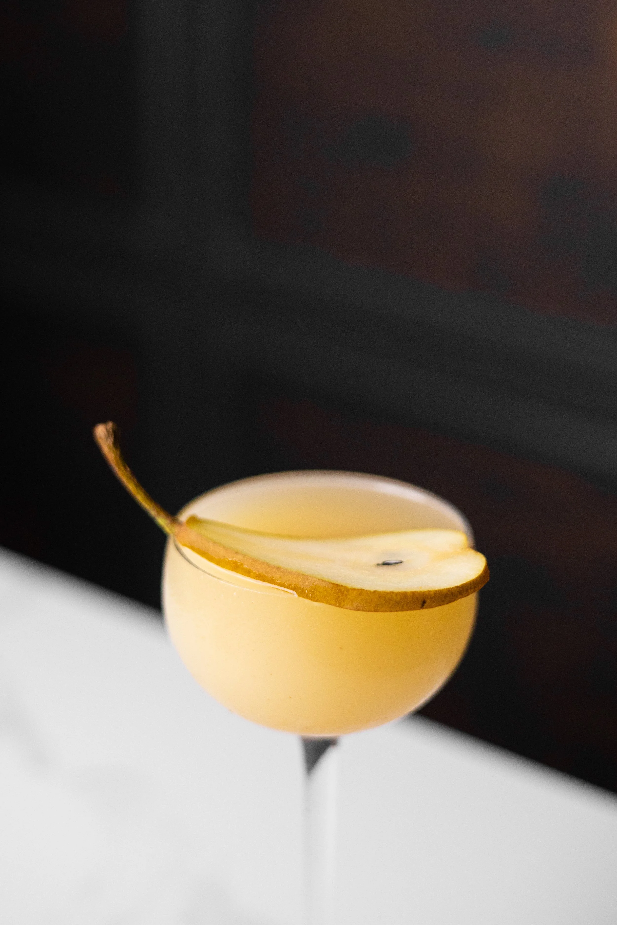 spiced gin, lemon, pear nectar, orgeat, cinnamon